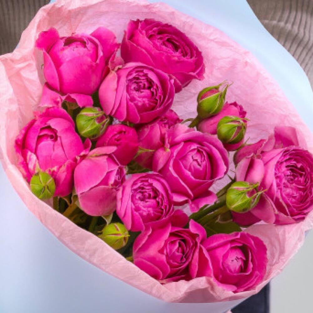 11 кустовых пионовидных роз в дизайнерской упаковке