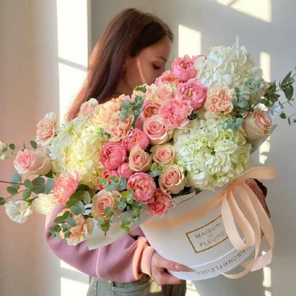 Альстромерии, Кустовые розы, Лизиантусы, Пионовидные розы, Розы, Ромашки