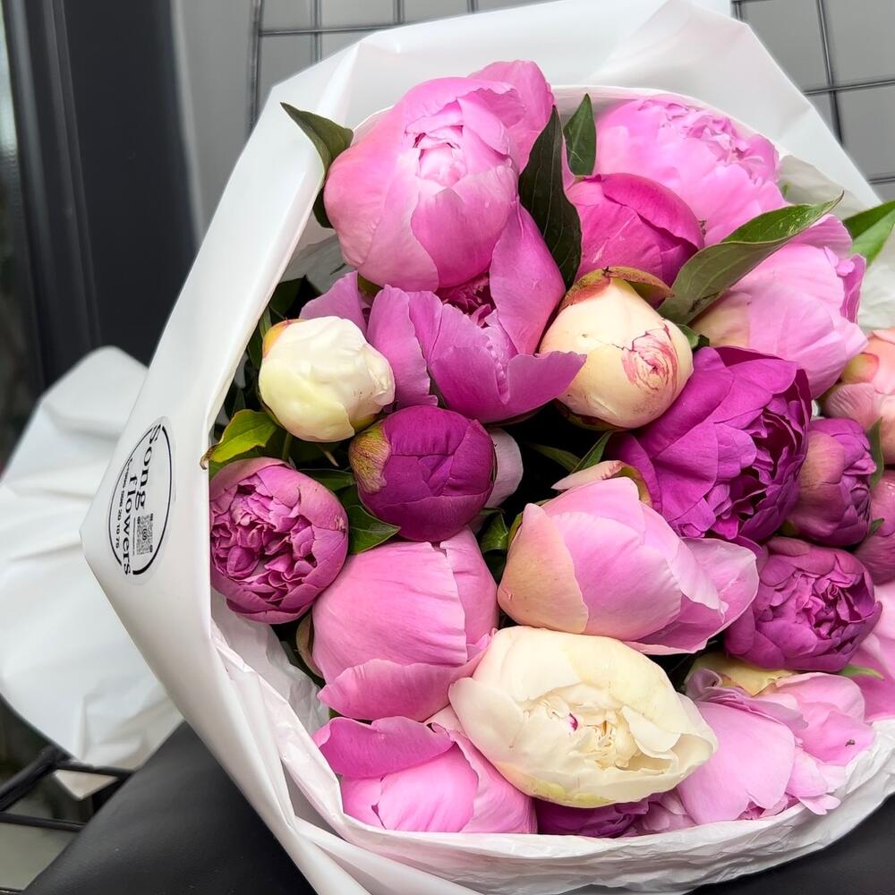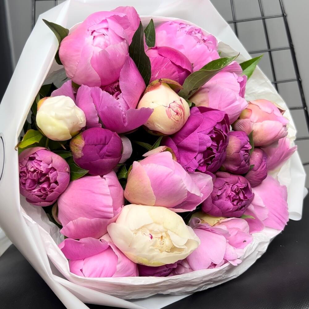 "Пиономания": 13 шикарных розовых пионов в коробке