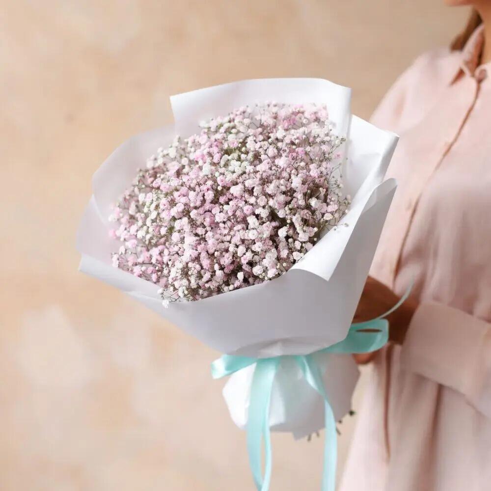 Гипсофила розовая – 3 шт.Пленка – 1 шт.Лента – 1 шт.