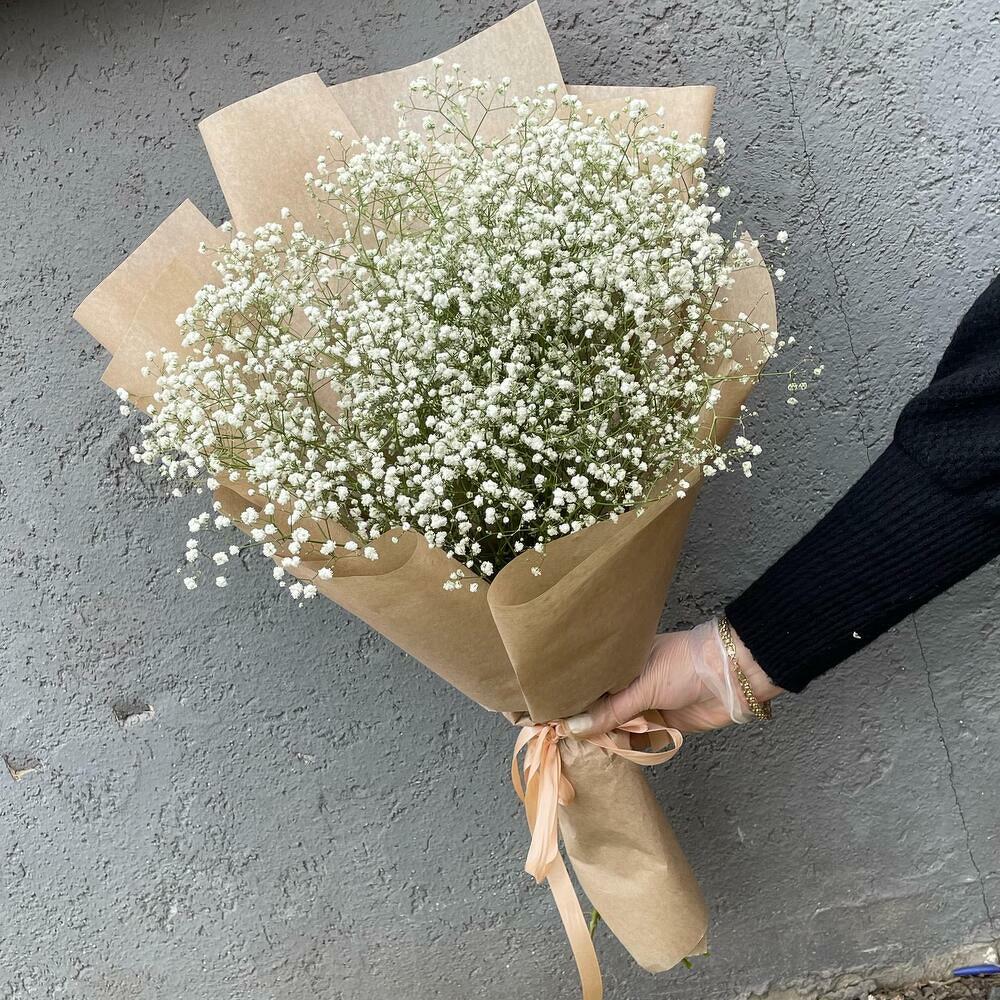 гипсофила белая – 7 шт.Крафт – 1 шт.Лента – 1 шт.