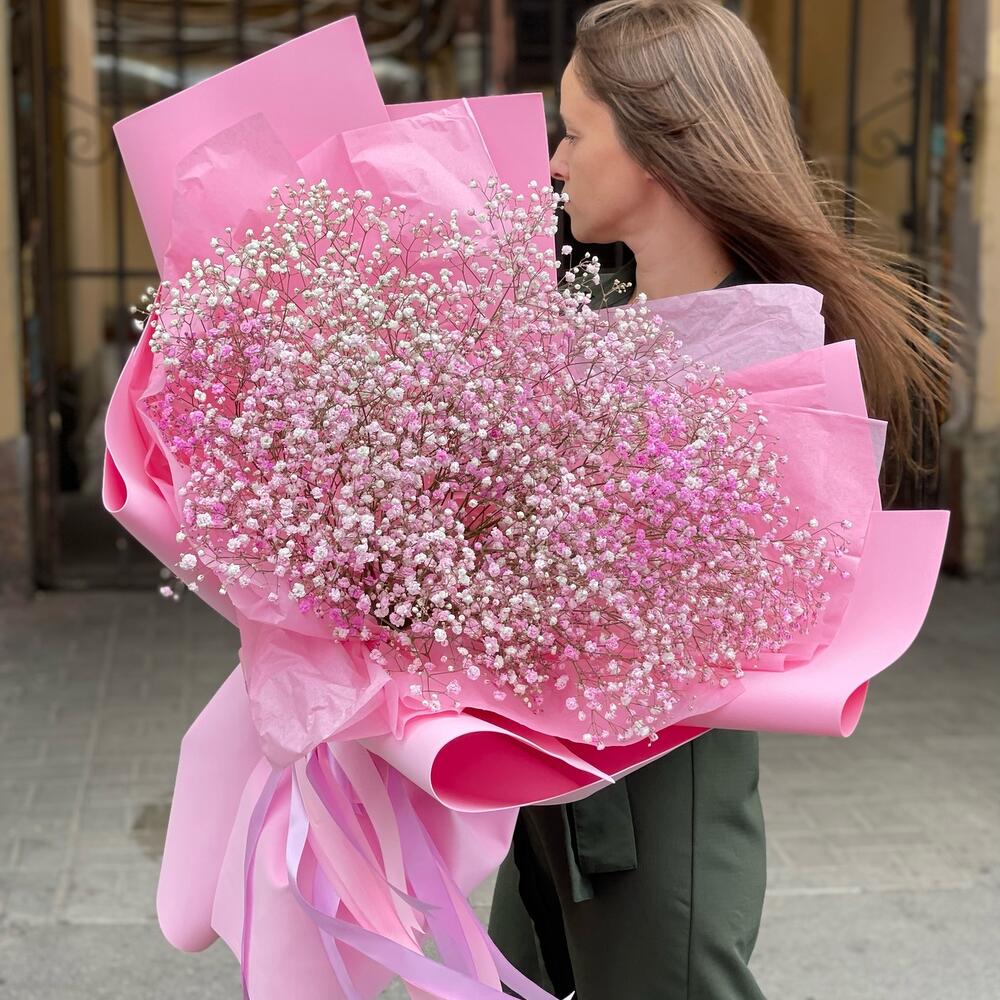 Гипсофила – 11 шт.Лента – 3 шт.Упаковка – 4 шт.Тишью – 4 шт.