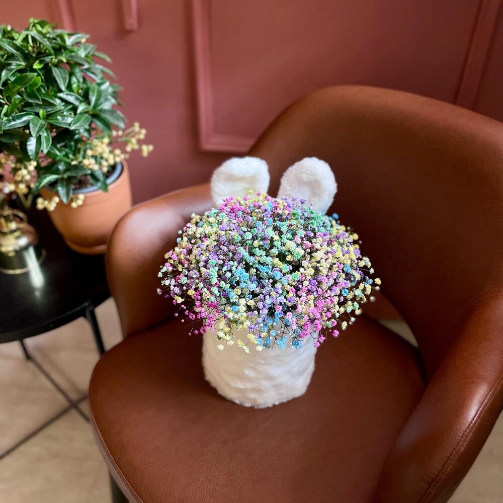 Оазис – 1 шт.Шляпная коробка – 1 шт.гипсофила радужная – 5 шт.