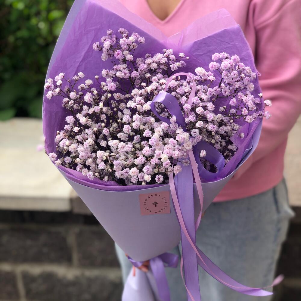 Гипсофила – 3 шт.Лента атласная – 2 шт.Упаковка дизайнерская – 2 шт.