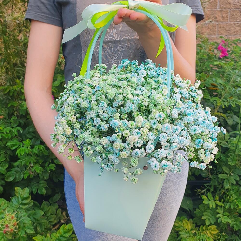 Композиция "Мята" из гипсофилы в сумочке
