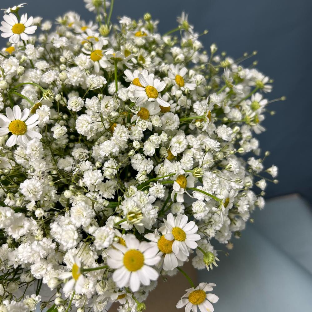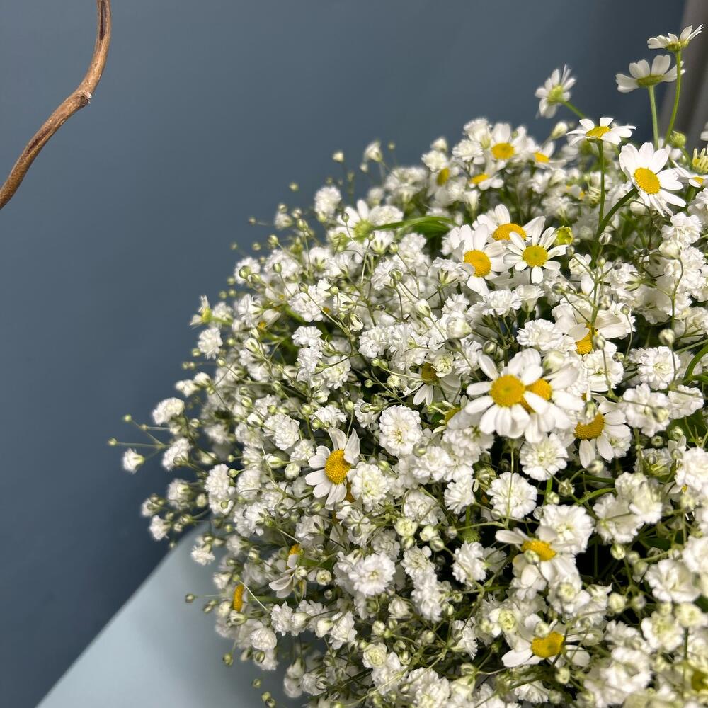 Коробка с гипсофилой и ромашкой