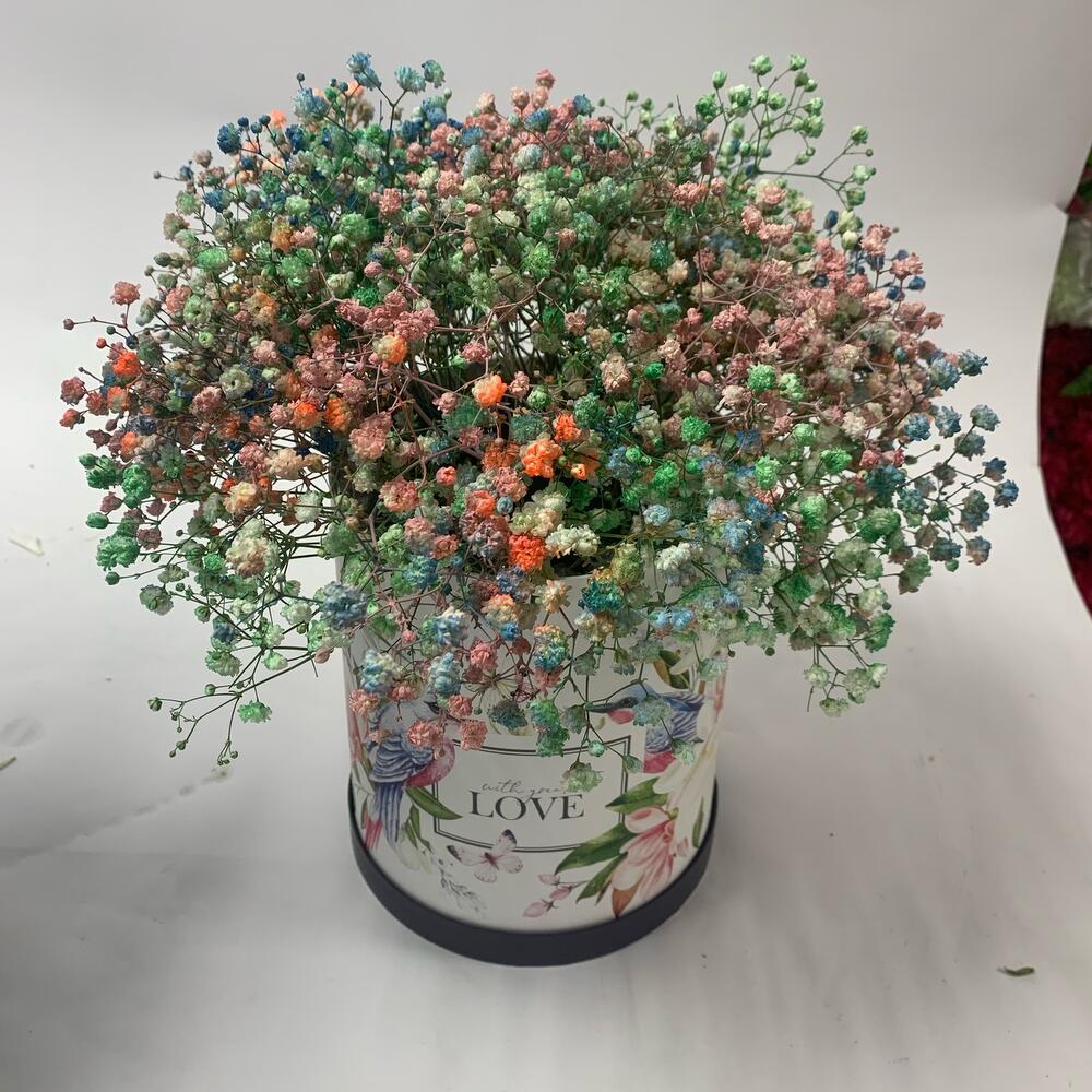 Коробка с радужной гипсофилой