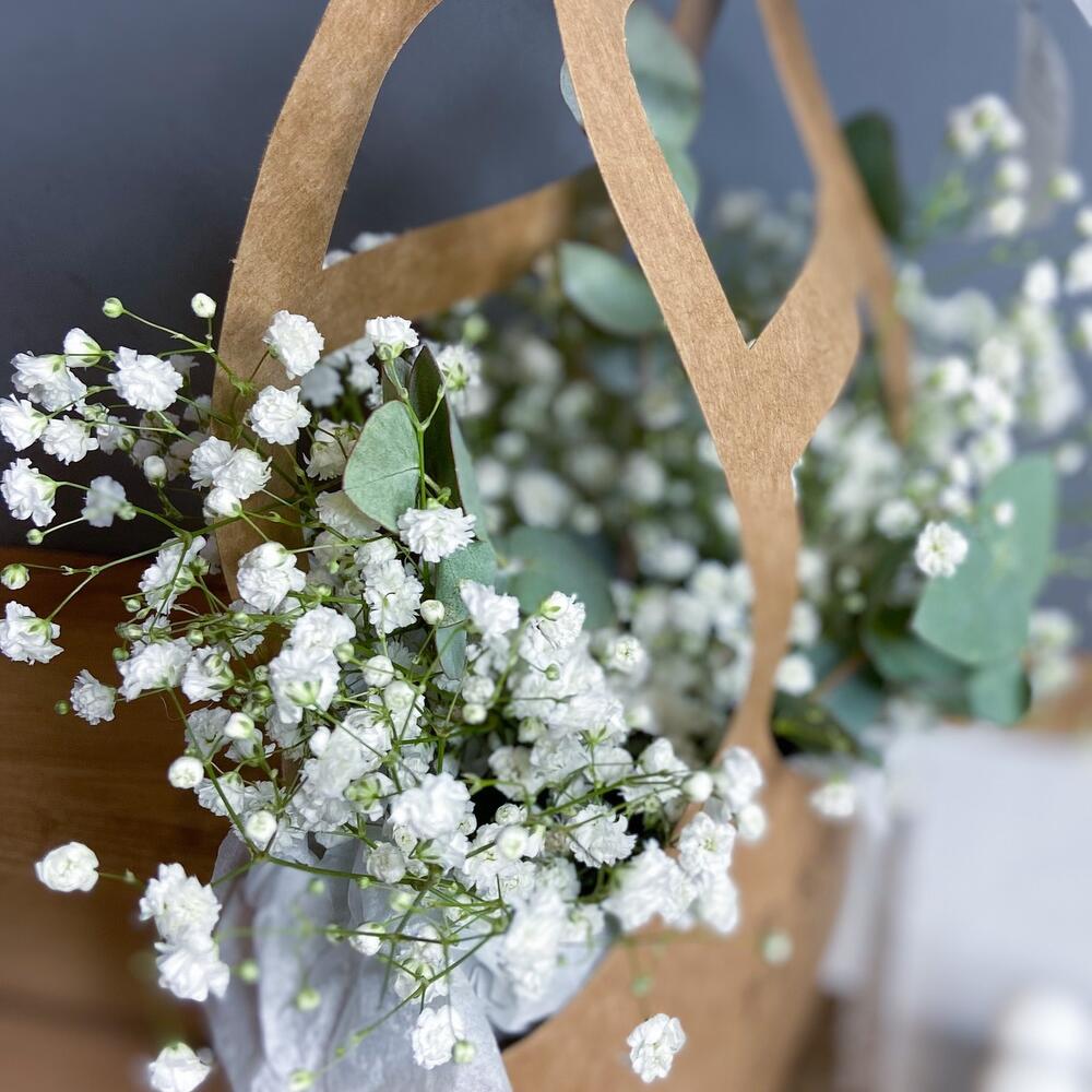 Эвкалипт ценерея – 4 шт.гипсофила белая – 3 шт.плайм сумка – 1 шт.