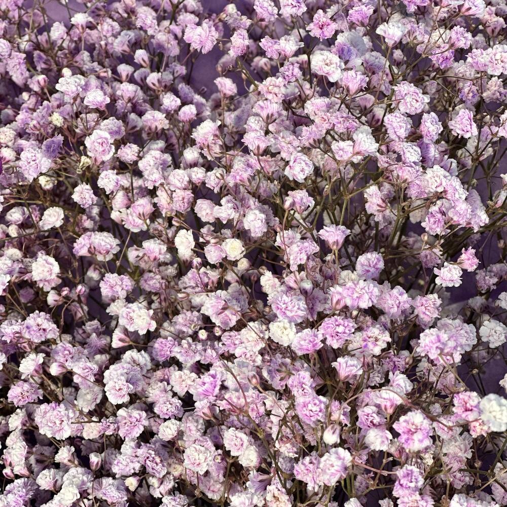 Лента атласная – 3 шт.Упаковка дизайнерская – 2 шт.гипсофила нежно фиолетовая – 7 шт.