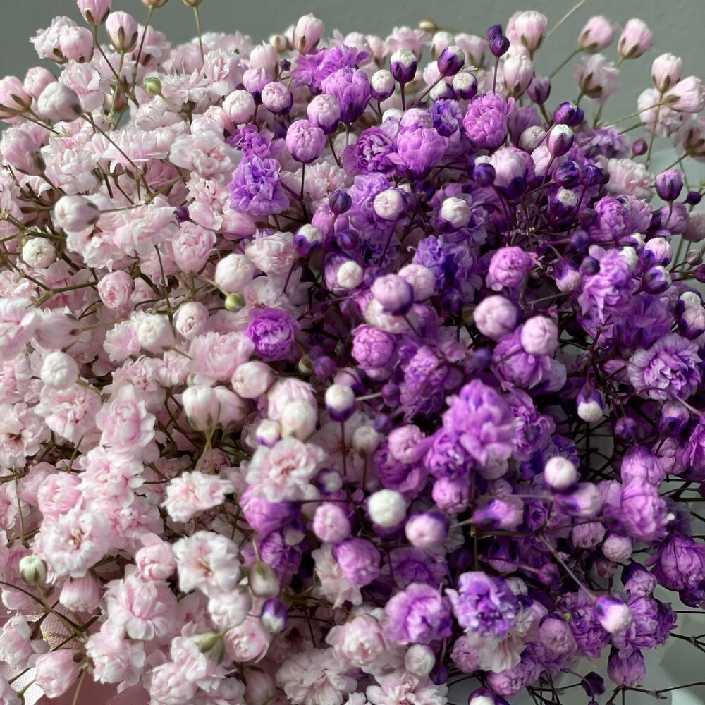 Композиция в стакане с разноцветной гипсофилой Гипсофила со временем превращается в сухоцвет и будет радовать своего получателя долгое время