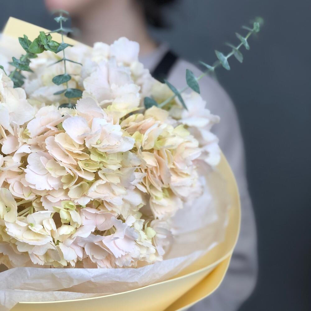 Гортензия – 3 шт.Эвкалипт – 2 шт.Упаковка дизайнерская – 2 шт.