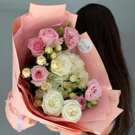 Гвоздики, Кустовые розы, Лизиантусы, Пионовидные розы, Розы
