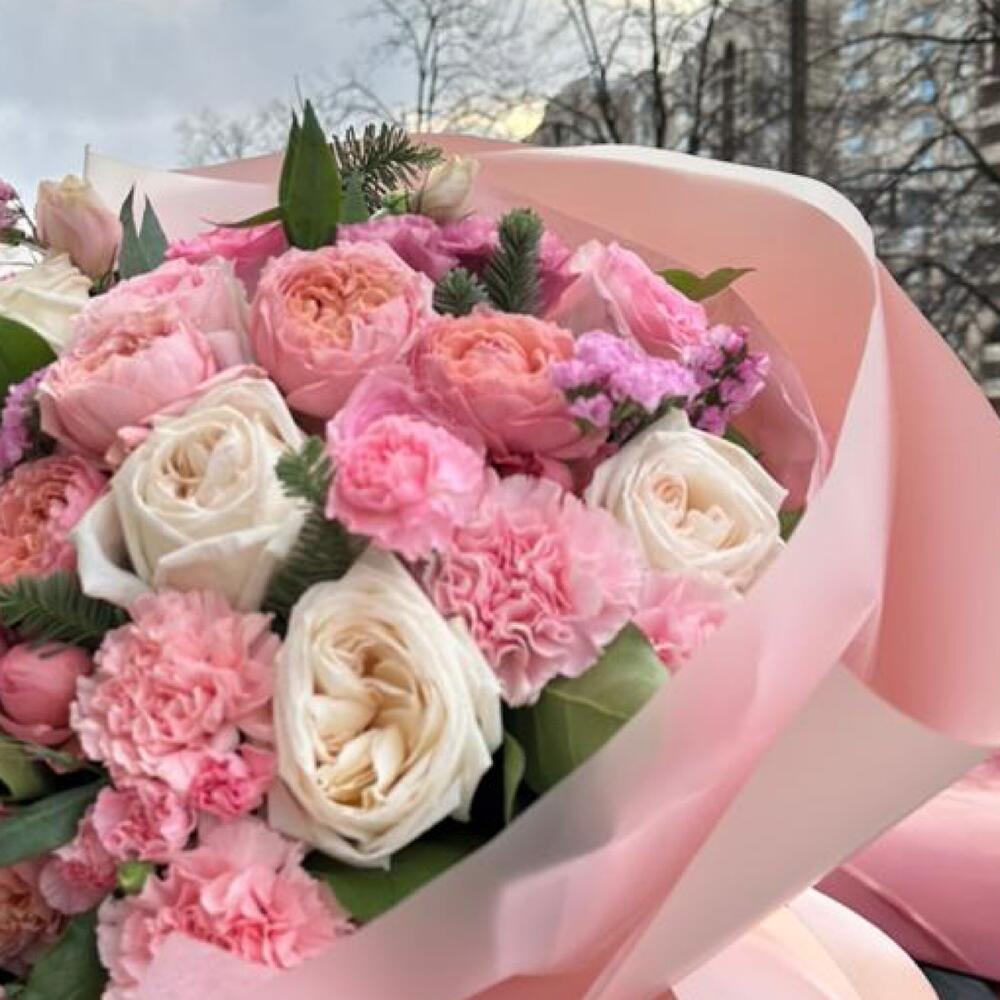 Шикарный розовый букет из роз и диантуса в стильном оформлении для самых нежных Уважаемые покупатели! Пожалуйста обратите ваше внимание на размер букета при заказе! Он учитывается вместе с упаковкой Чтобы наши прекрасные букеты дольше радовали получателя рекомендуем вам: ⭐Обновить срез букета перед тем, как поставить его в воду⭐Ставить цветы в прохладную проточную воду ⭐Меняйте воду в вазу каждый день⭐Не забывайте подрезать цветы, перед тем, как ставить их в воду⭐Не ставить у отопительных приборов и на сквозняке Фирменный стиль наших букетов разработан специально так, чтобы упаковку не нужно было снимать, так как она придаёт целостность букету и прекрасно держится в вазе