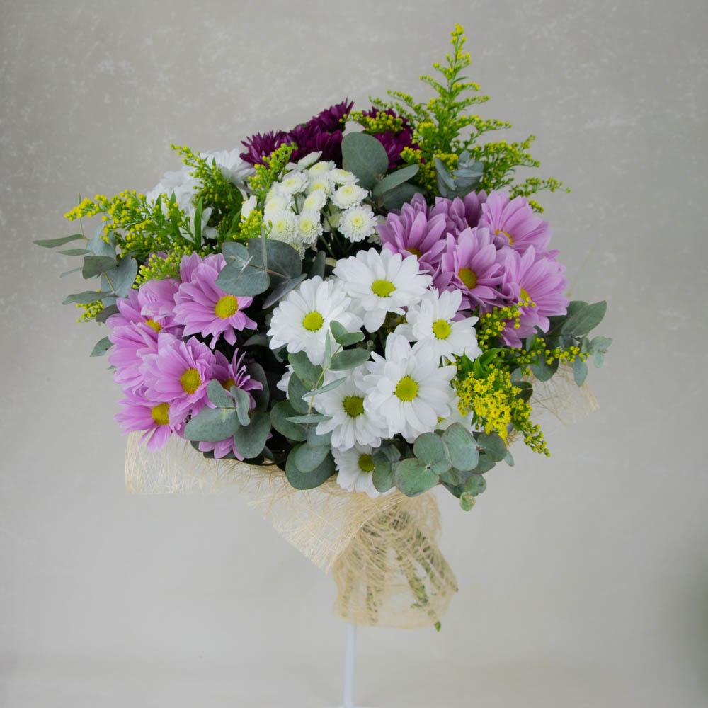 Chrysanthemum – 6 шт. Solidago – 3 шт. Greenery – 1 шт. packaging – 1 шт.