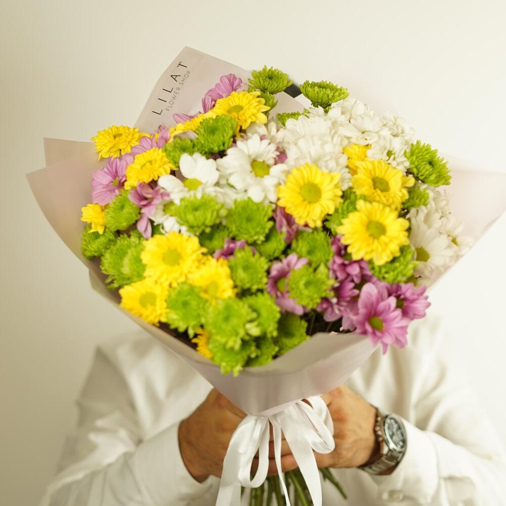 Альстромерии, Гвоздики, Кустовые розы, Лизиантусы, Розы, Хризантемы