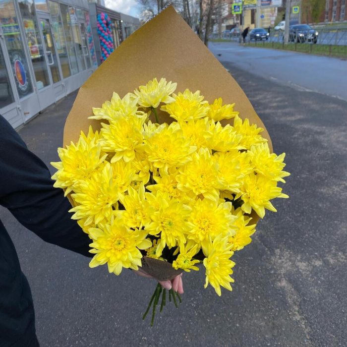 Хризантема кустовая – 7 шт.Крафт упаковка – 1 шт.
