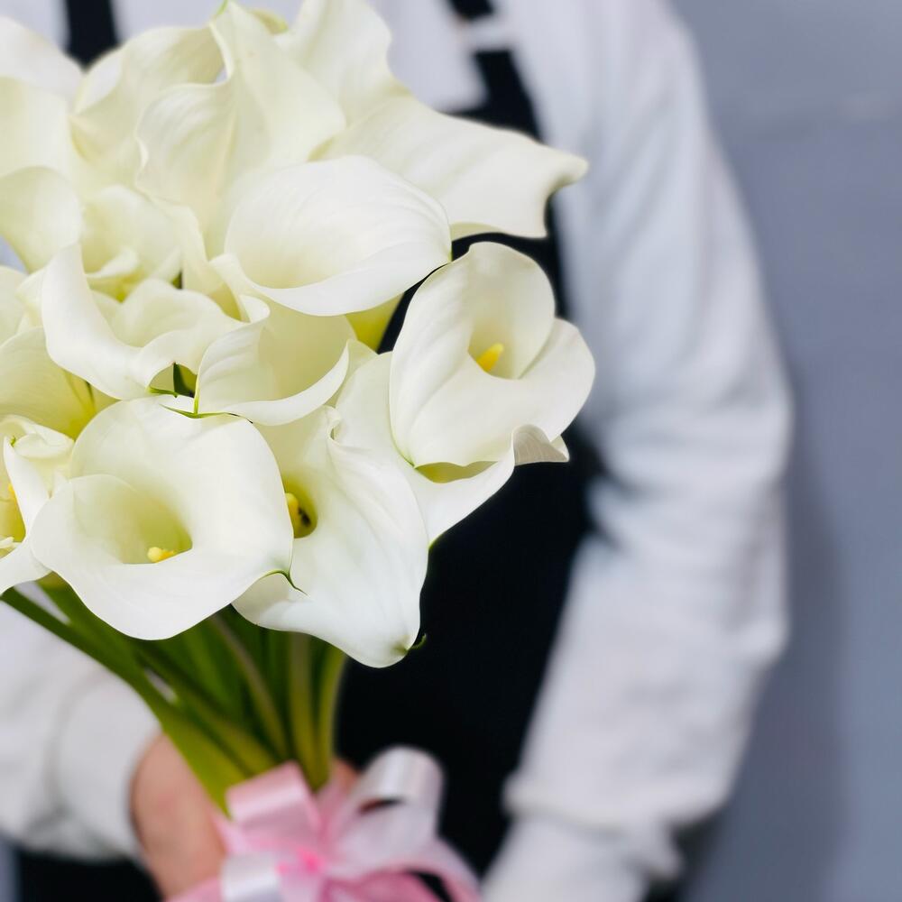 Калла белая – 19 шт.Лента атласная – 2 шт.
