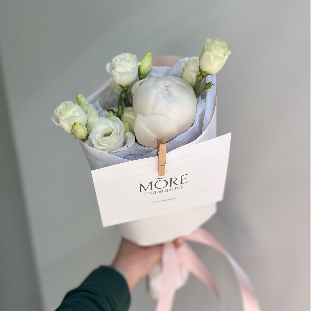 Нежный мини букетик - пион и эустома