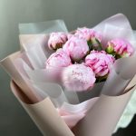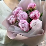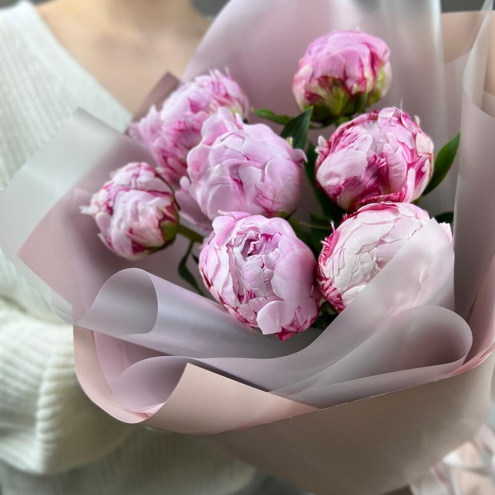 Лента атласная – 2 шт.Пион Сара Бернар – 7 шт.Пленка матовая – 5 шт.пленка полупрозрачная – 6 шт.