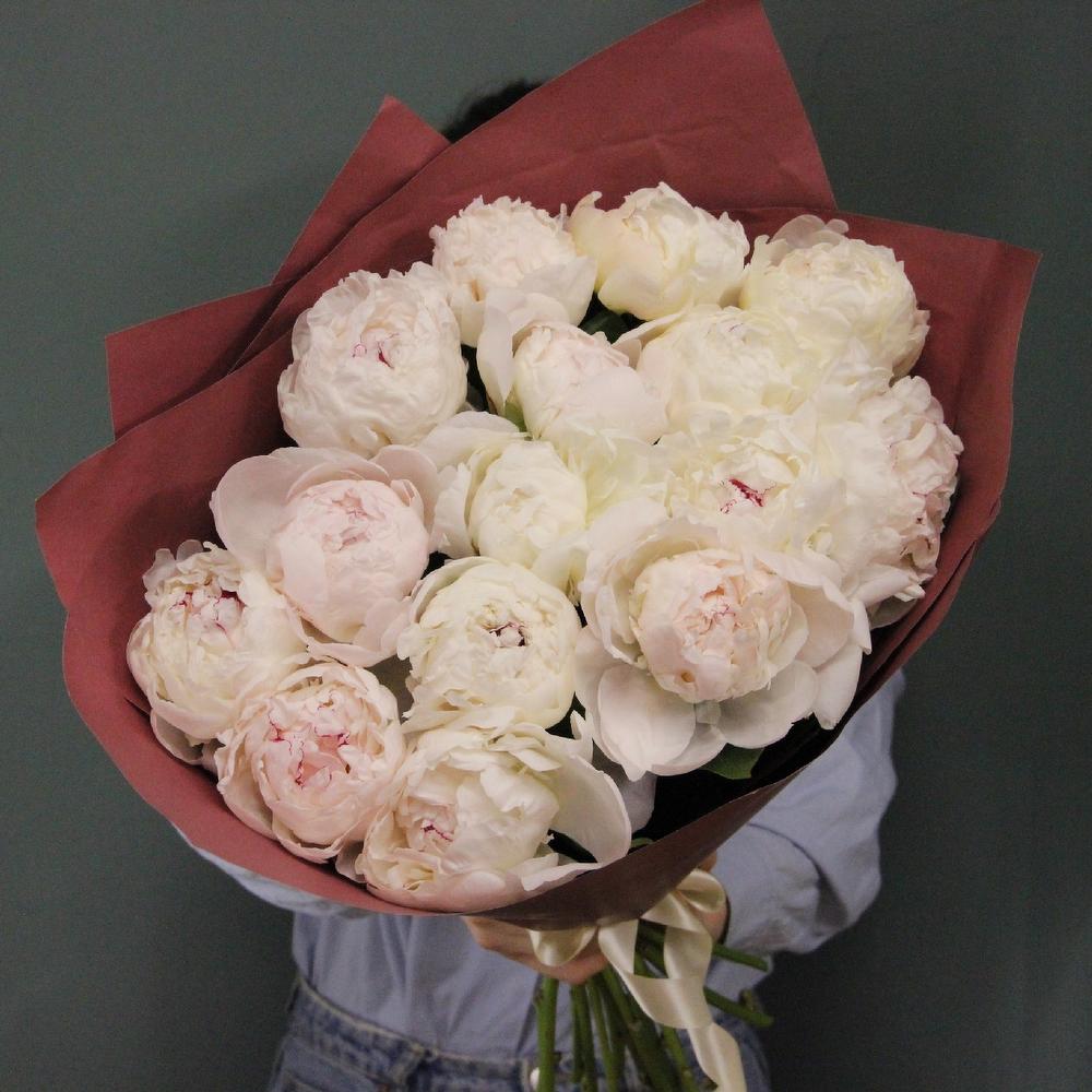Пион – 17 шт.Лента атласная – 2 шт.Упаковка дизайнерская – 3 шт.