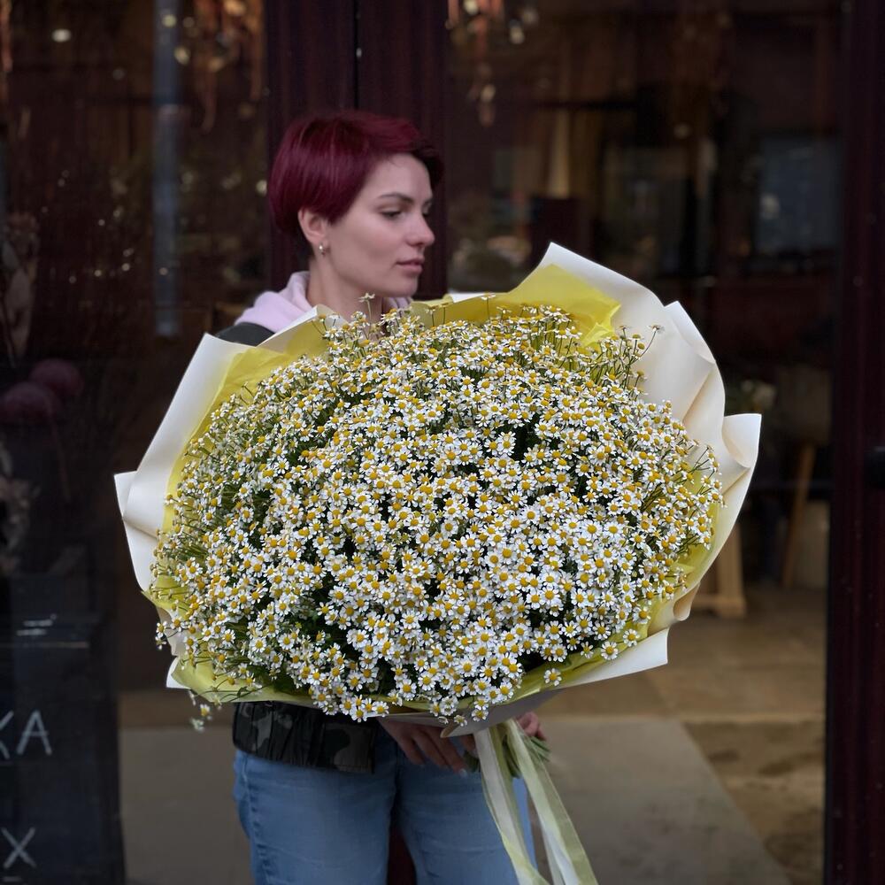 матрикария (ромашка кустовая) – 75 шт.авторская упаковка (в подарок) – 1 шт.
