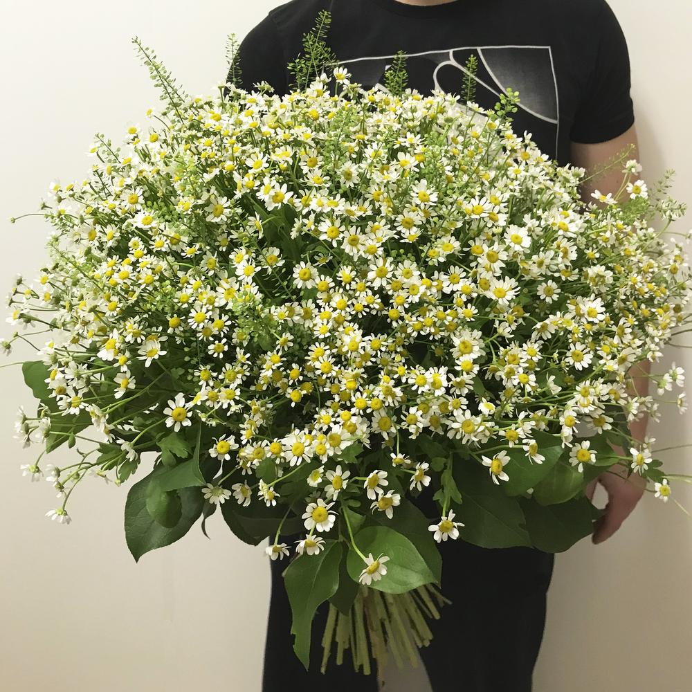 Ромашка полевая – 50 шт.Гринбелл – 10 шт.Салал – 10 шт.Лента атласная – 2 шт.
