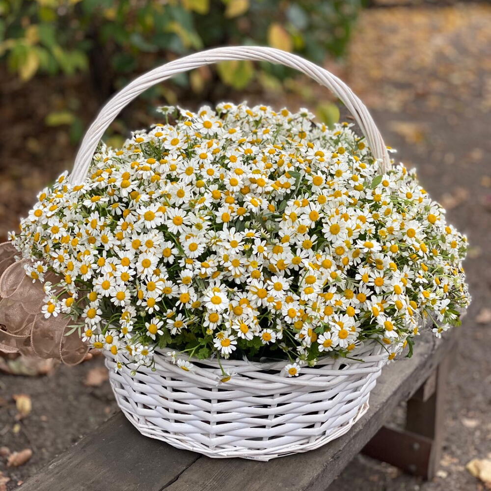 Корзина плетеная – 1 шт. полевые ромашки – 25 шт.