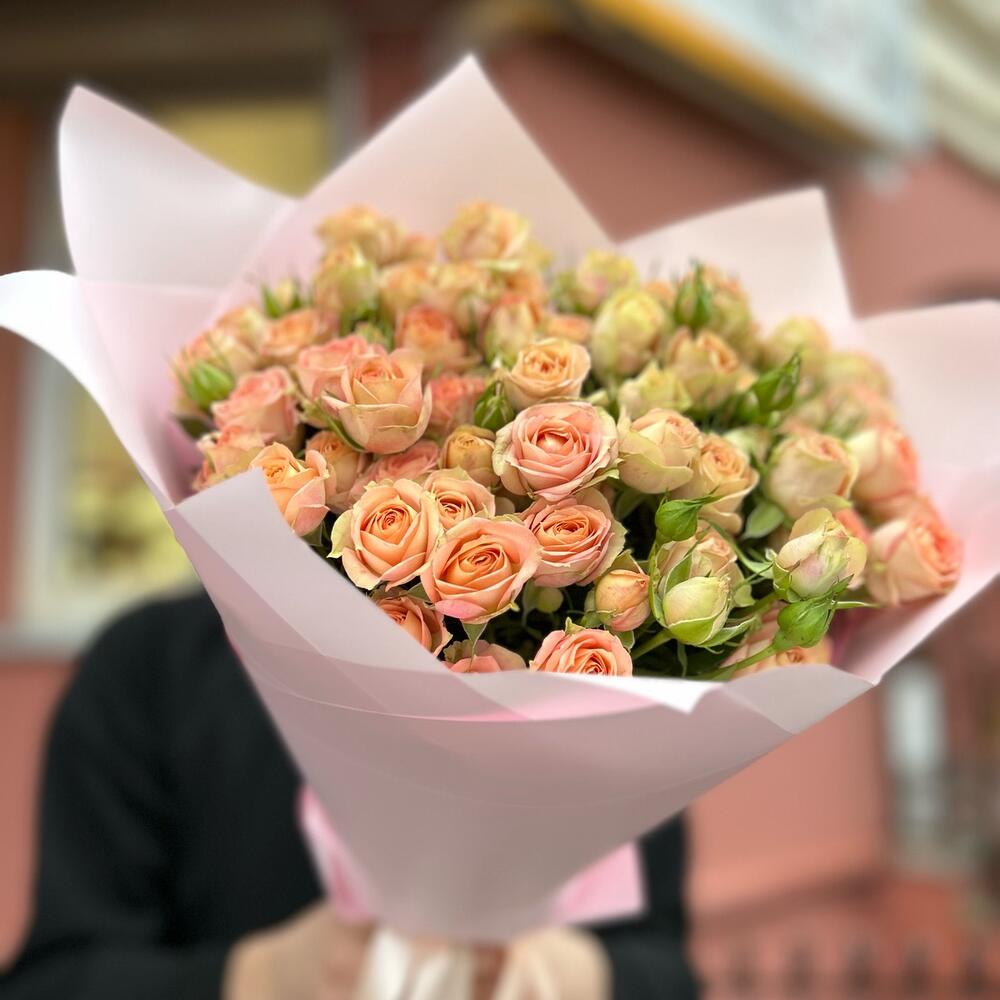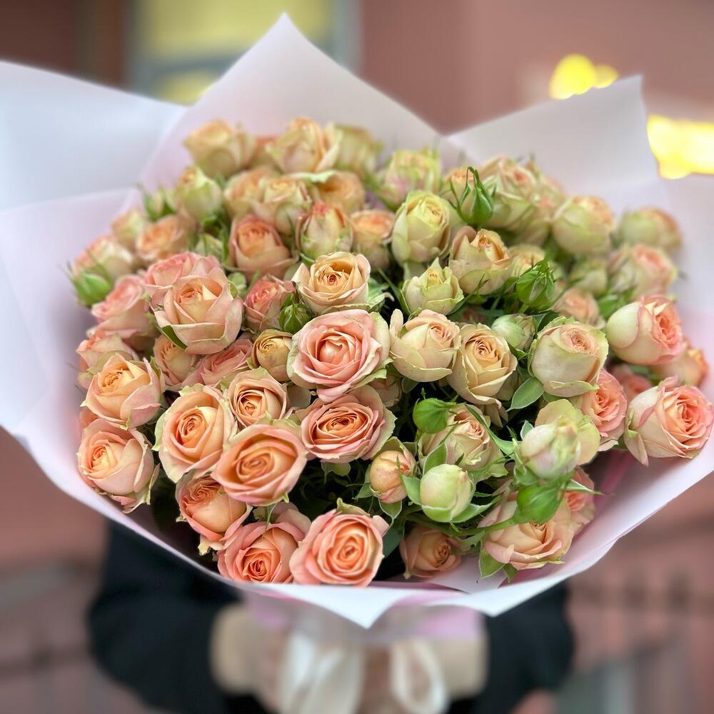 Букет из 15 кустовых веток сорта Азор . Количество бутонов (розочек) в букете может достигать 101 штуки.