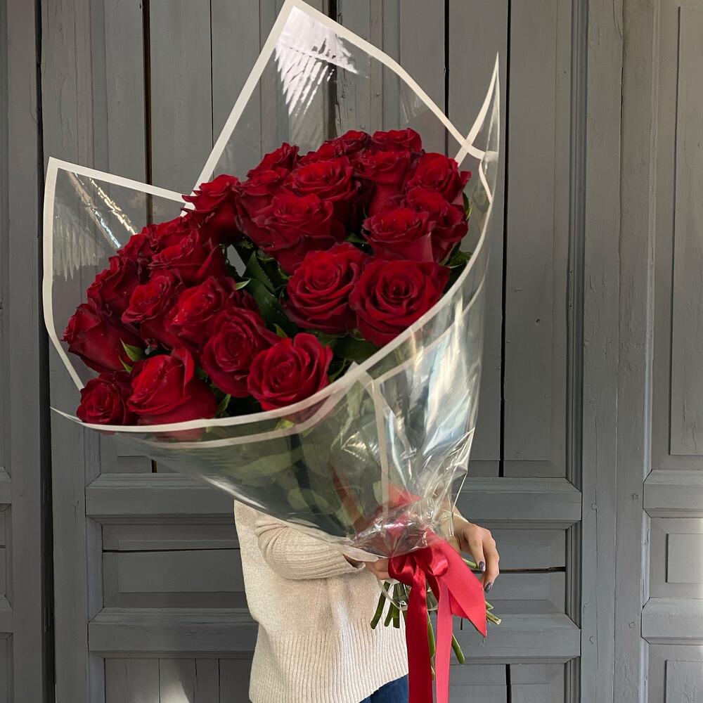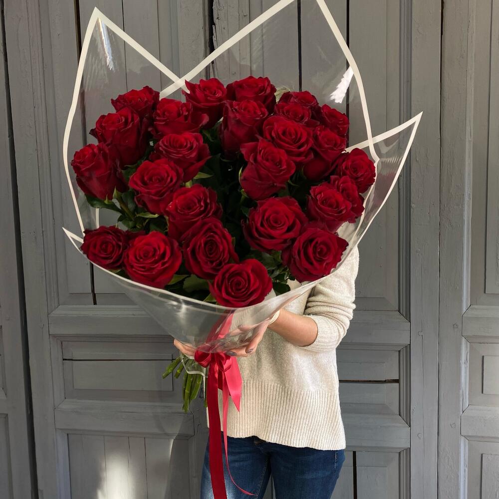 25 красных роз 70 см