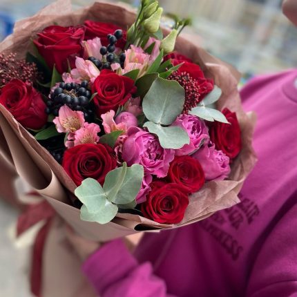 Категорий: Альстромерии, Гвоздики, Пионовидные розы, Розы, Хризантемы