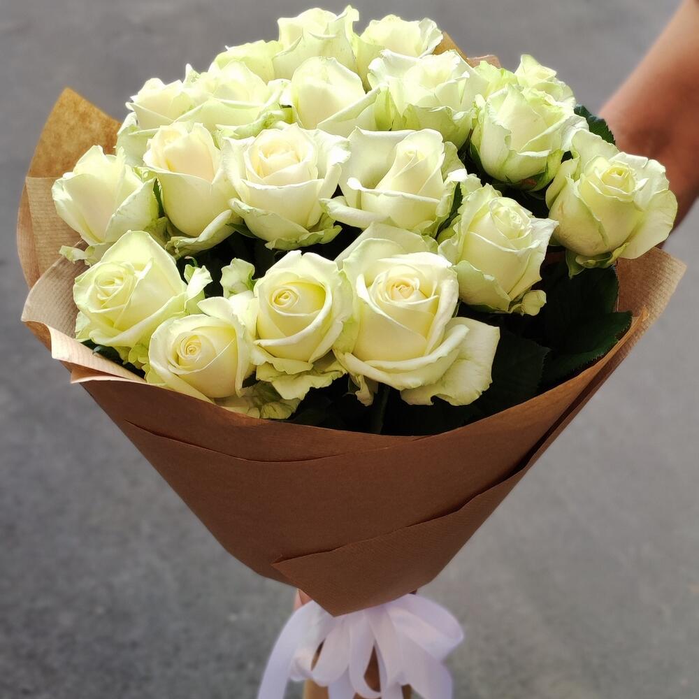 роза украинская белая – 19 шт. бумага крафт – 1 шт.