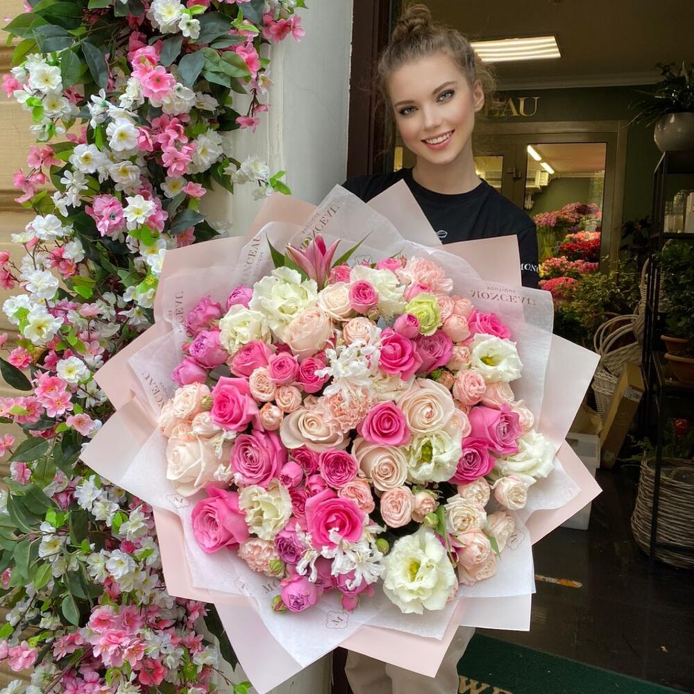 Категорий: Гвоздики, Кустовые розы, Лизиантусы, Пионовидные розы, Розы