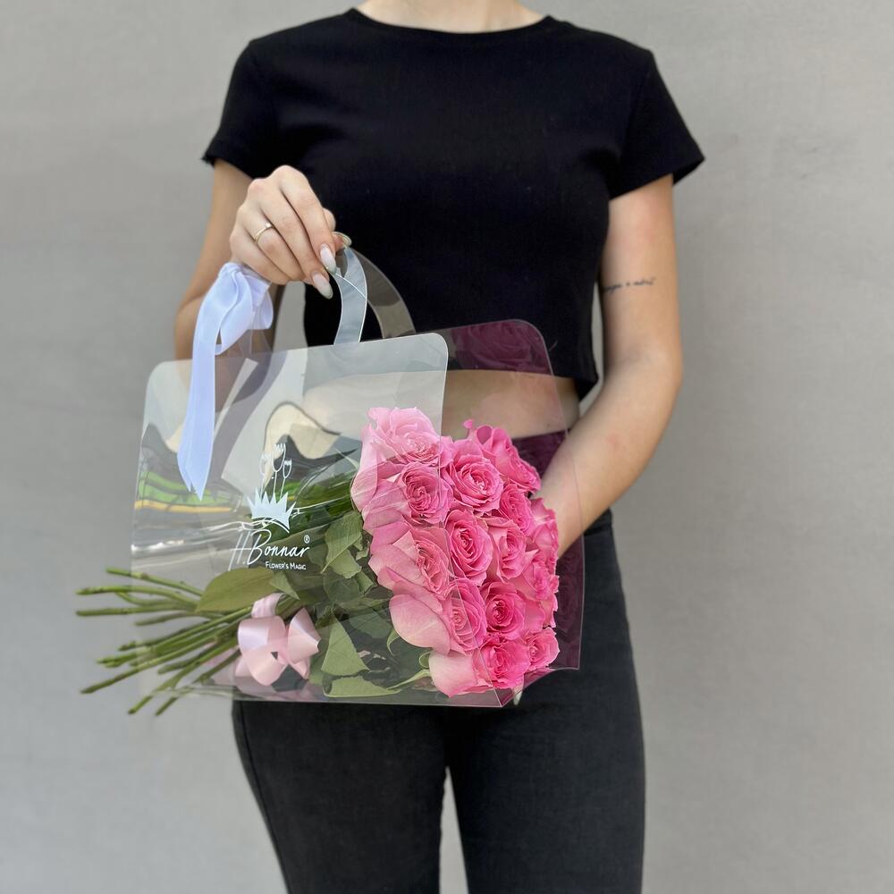 Букет из роз в сумке – изысканная композиция в удобной и стильной упаковке.