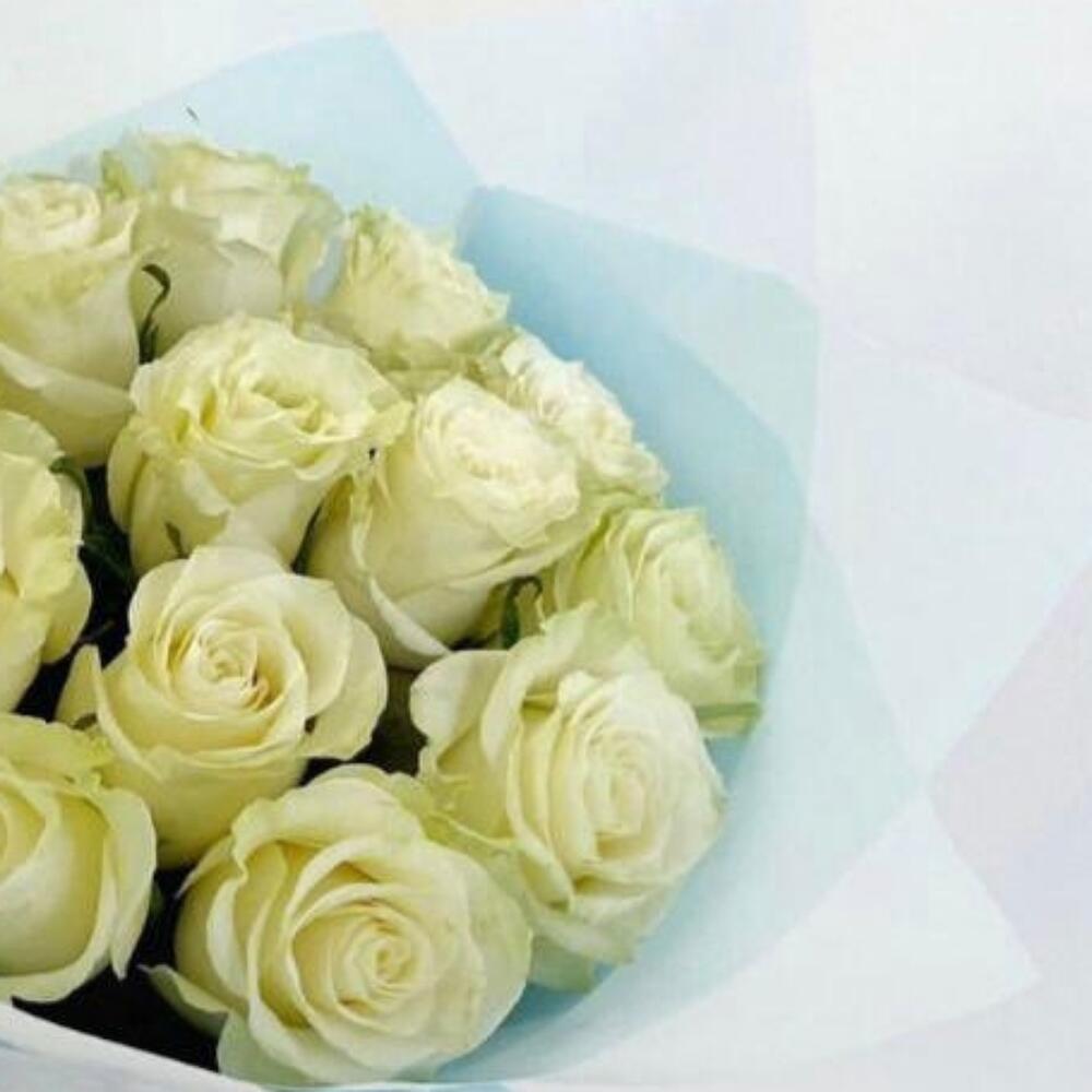 Лента атласная – 1 шт.Роза белая – 13 шт.Упаковка дизайнерская – 2 шт.