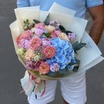 Альстромерии, Гортензии, Кустовые розы, Лизиантусы, Розы, Хризантемы