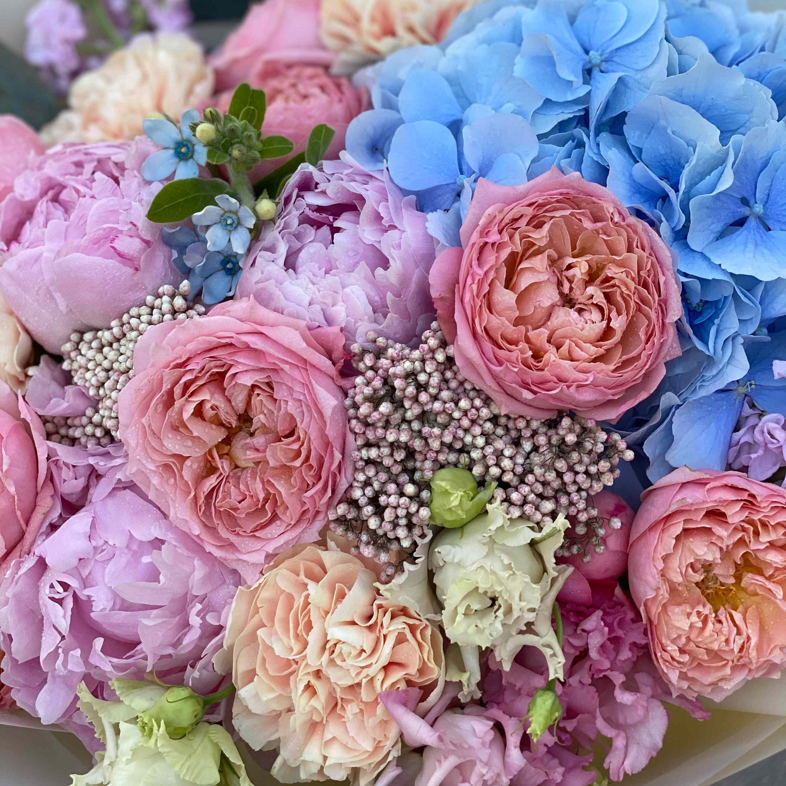 “Эвкалиптическая роскошь” гортензия и пионовидная кустовая роза
