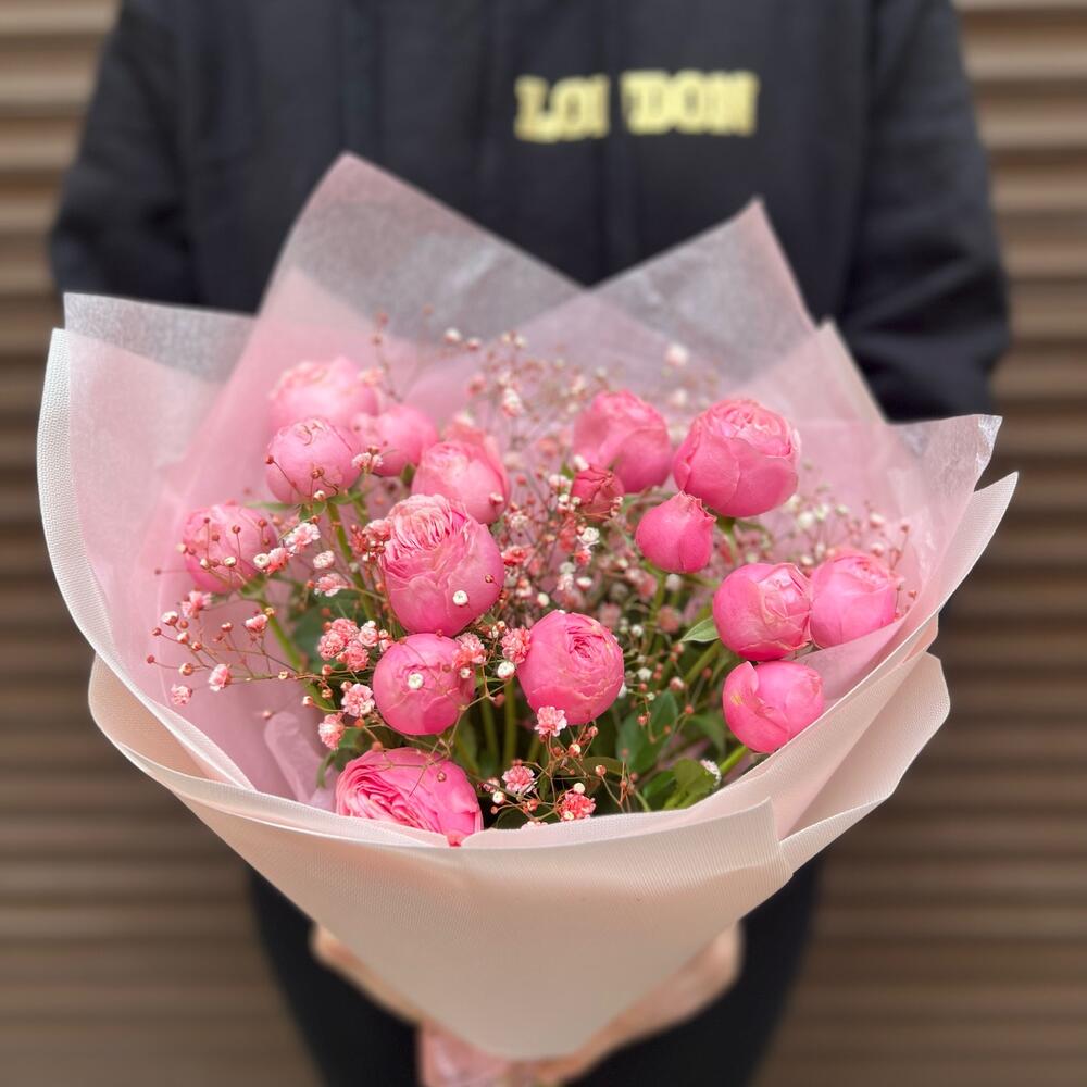 Букет из пион. розы Квин Краун 15 шт