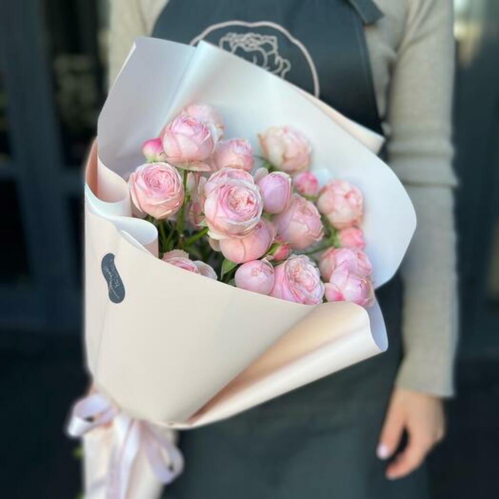 Пионовидная кустовая роза – 3 шт.декоративная упаковка – 1 шт.Атласная лента – 1 шт.