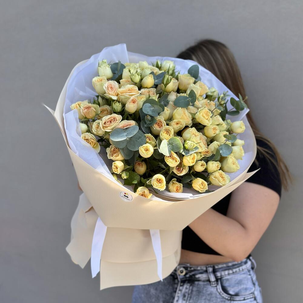 Гвоздики, Кустовые розы, Лизиантусы, Пионовидные розы, Розы