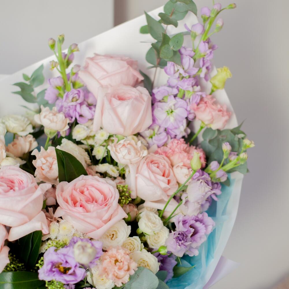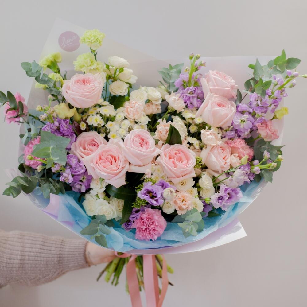 Категорий: Гвоздики, Кустовые розы, Лизиантусы, Пионовидные розы, Розы, Хризантемы