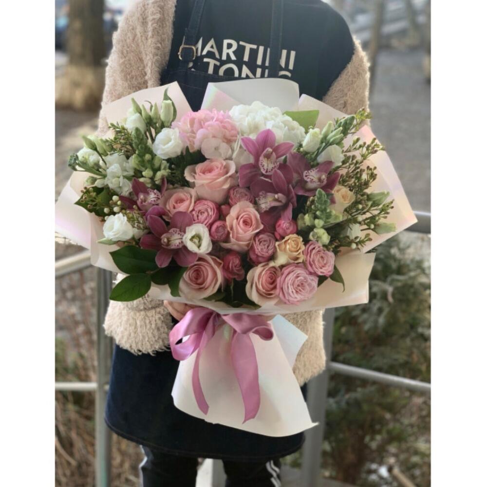 Гвоздики, Кустовые розы, Лизиантусы, Пионовидные розы, Розы