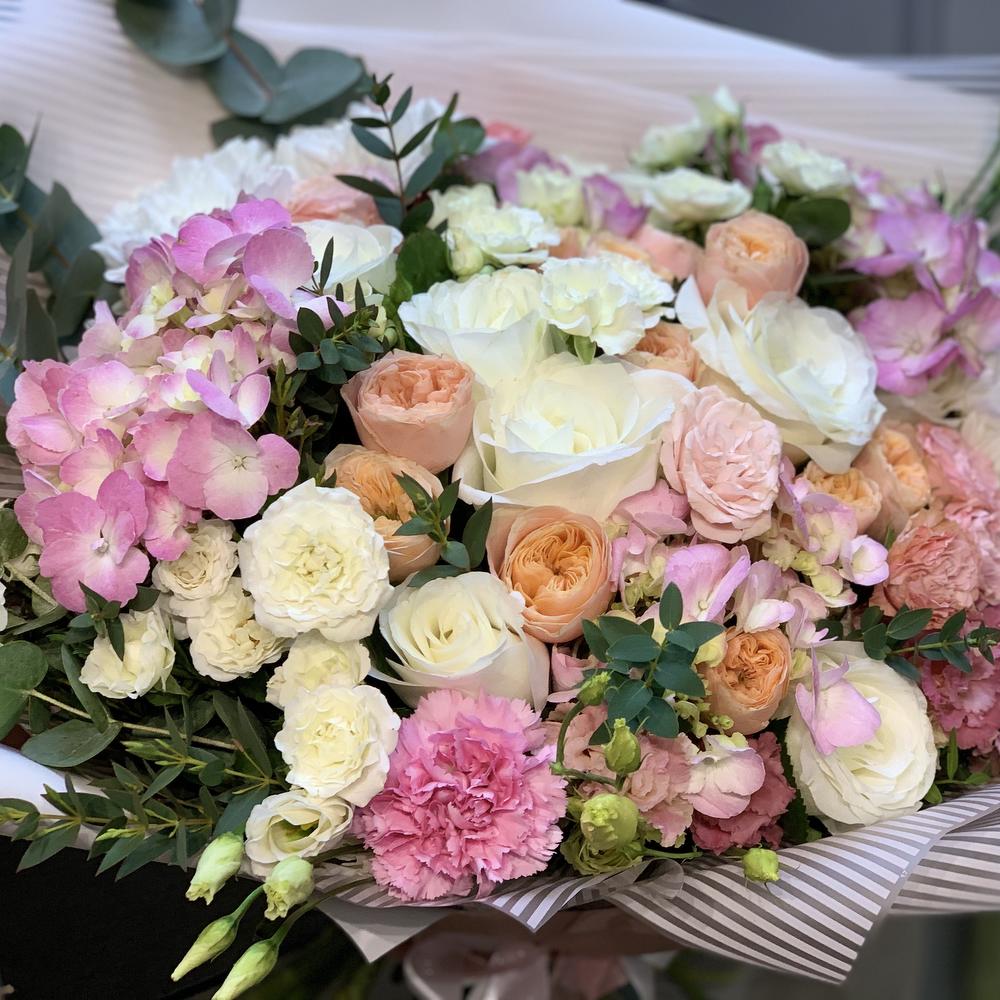 Категорий: Гвоздики, Гортензии, Кустовые розы, Лизиантусы, Розы, Хризантемы