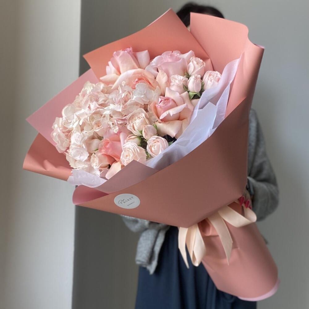 Гвоздики, Кустовые розы, Лизиантусы, Пионовидные розы, Розы