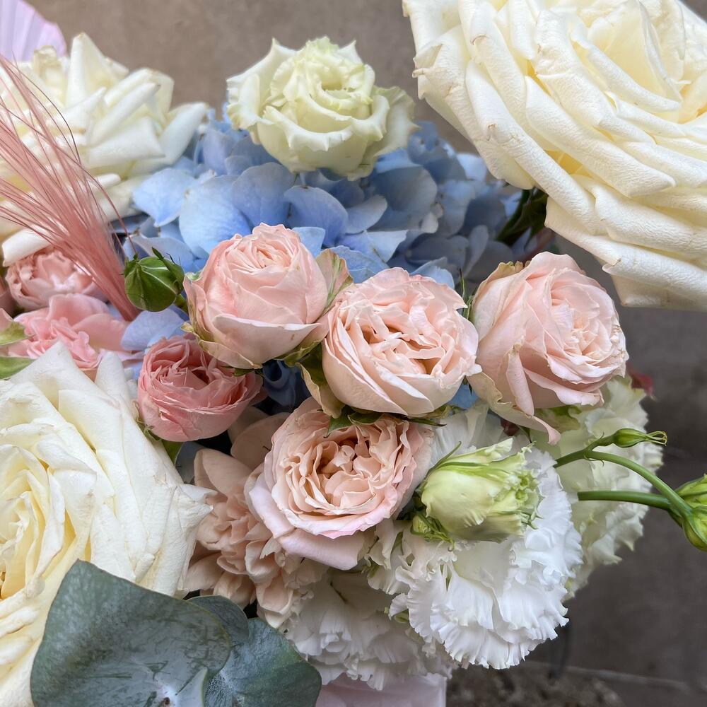 Кустовые розы, Лизиантусы, Розы, Сухоцвет