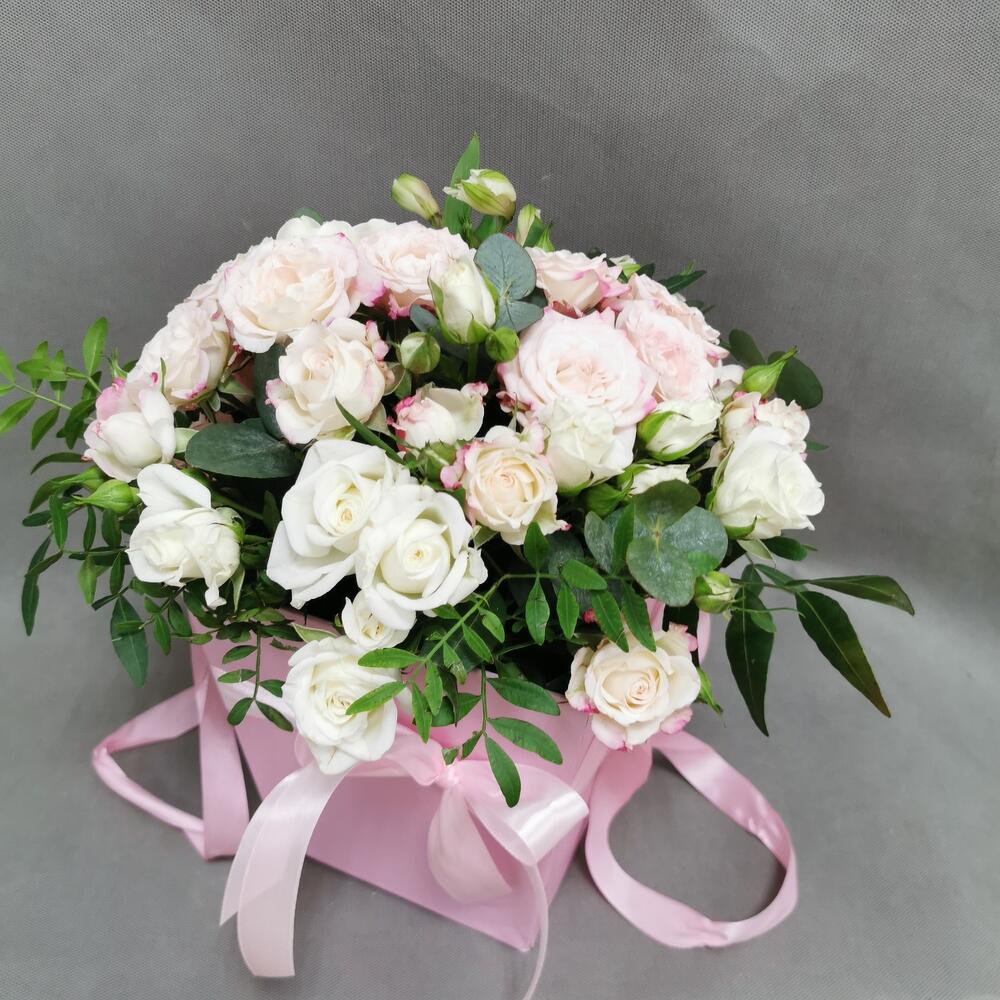 Альстромерии, Гвоздики, Кустовые розы, Лизиантусы, Розы, Хризантемы