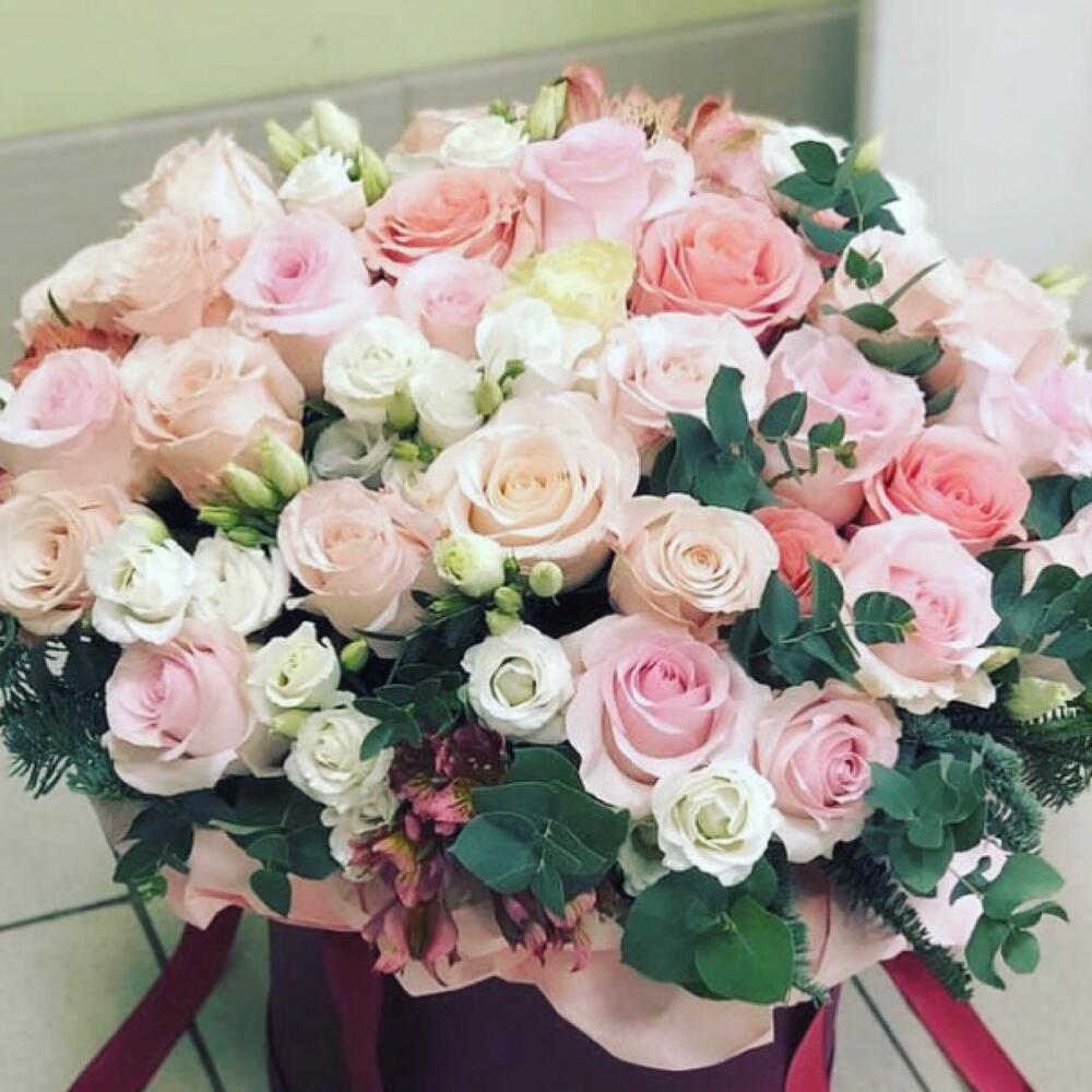 Гвоздики, Кустовые розы, Лизиантусы, Пионовидные розы, Розы