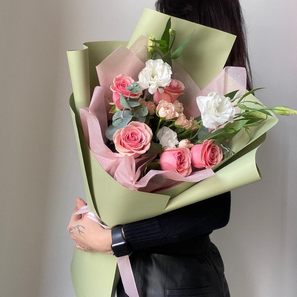 Гвоздики, Лизиантусы, Розы, Тюльпаны