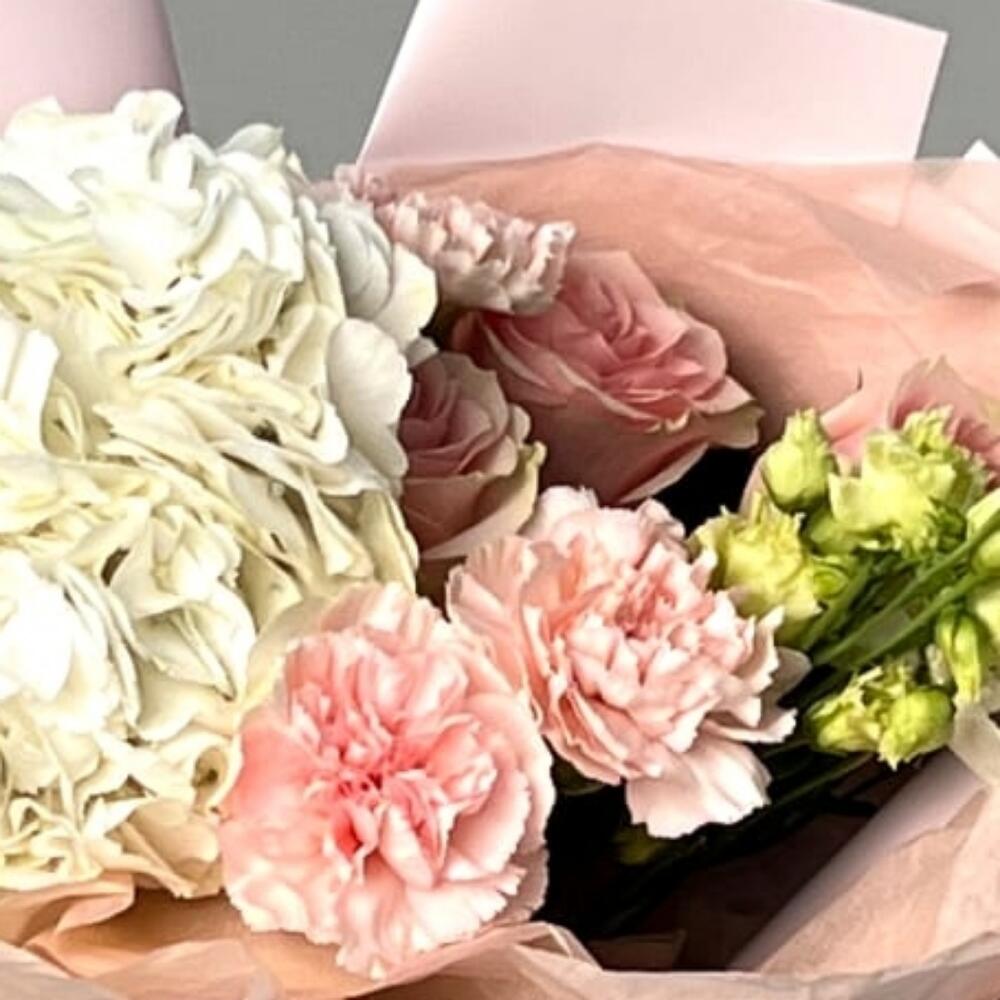 Гвоздики, Кустовые розы, Лизиантусы, Пионовидные розы, Розы