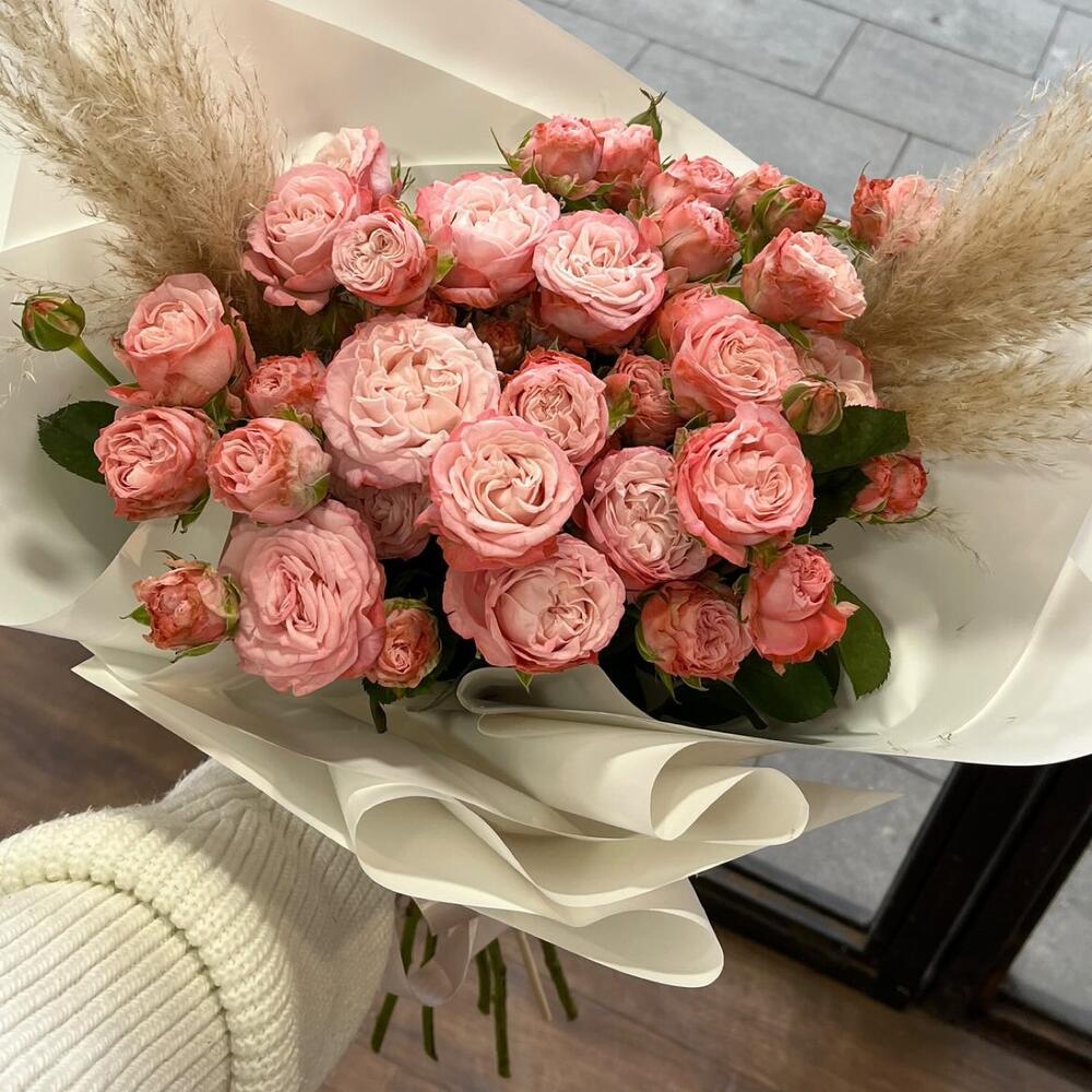 Кустовые розы, Пионовидные розы, Розы, Сухоцвет, Тюльпаны