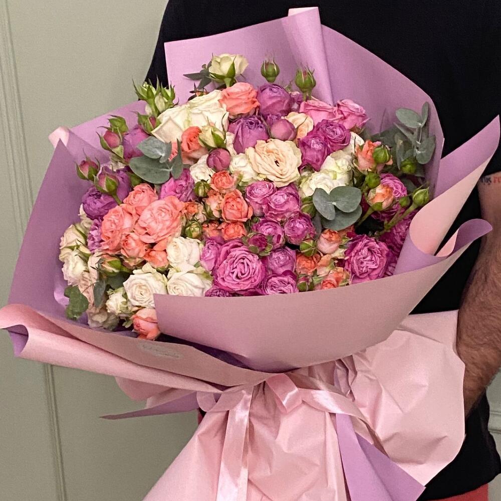 Пионовидная кустовая роза – 31 шт. Упаковка дизайнерская – 5 шт. Открыточка с вашими пожеланиями – 1 шт. доставка – 1 шт.